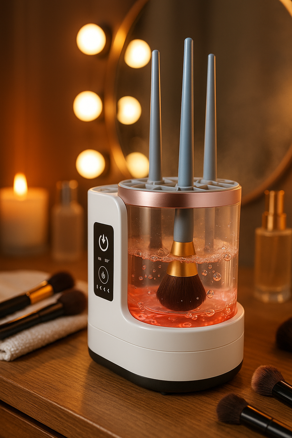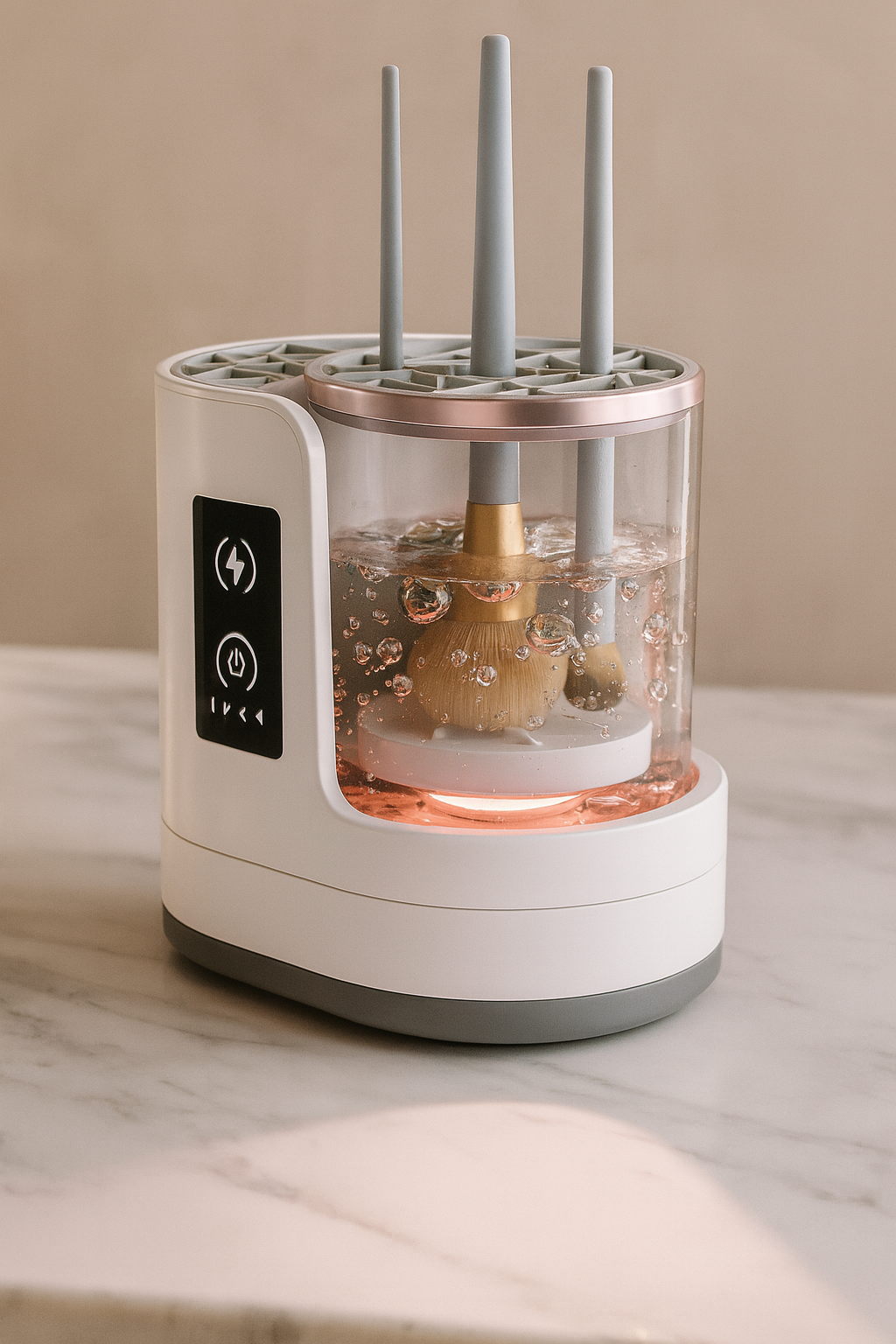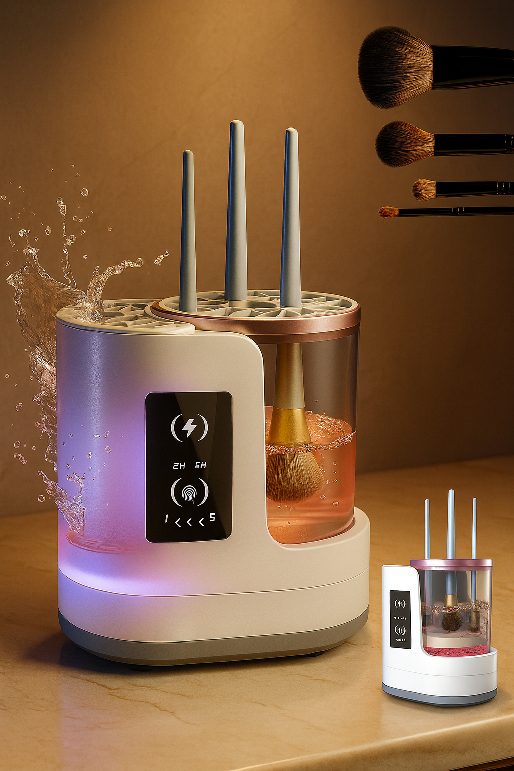 Eleva tu rutina de belleza con esta Estación de limpieza de brochas 2 en 1, que no solo limpia en profundidad, sino que también seca y desinfecta tus brochas con eficacia. Gracias a su potente flujo de agua rotatorio y diseño ergonómico, ofrece resultados profesionales en casa o de viaje, sin dañar las cerdas.
